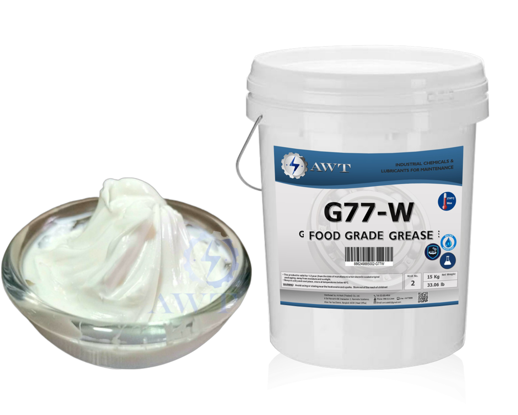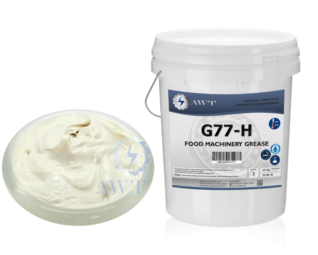 จารบีฟู้ดเกรดสีขาวขุ่น มาตรฐาน FDA NSF (H1) ทนความร้อนสูงพิเศษ 300°C - 400°C ไม่หยด ไม่หลอมละลาย เมื่ออุณหภูมิสูงเกิน 400°C เหมาะสำหรับเครื่องจักรงานหนักที่มีอุณภูมิสูงต่อเนื่องตลอดเวลา แบริ่งเตาอบ โซ่ สายพานลำเลียงเตาอบ เฟืองเกียร์ โบลเวอร์ มอเตอร์ไฟฟ้า เครื่องรีดยาง เครื่องจักรขึ้นรูปพลาสติก ฯลฯ ยับยั้งออกซิเดชั่น ป้องกันการเสื่อมสภาพจากความร้อนสูง ยึดเกาะวัสดุได้ดี ป้องกันฝุ่นละออง กันน้ำ ป้องกันสนิม ยับยั้งการกัดกร่อน ทนต่อกรด ด่าง และความชื้น ทนต่อการสัมผัสน้ำและไอน้ำ ง่ายต่อการปั๊มจ่ายในระบบหล่อลื่นส่วนกลางและกล่องเกียร์ เหมาะสำหรับงานรอบต่ำ-รอบปานกลาง